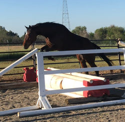 Born 2020, Frankly All Good is a 16.2h "in-your-pocket", very chill and focused Irish Thoroughbred. She is currently being ridden on the flat under-saddle, with a beginner riding her at a walk and an intermediate riding her at a trot. She is calm and relaxed under saddle, and enjoys being worked, learning new things, and is a very quick study. She enjoys her free-jumping sessions, with excellent scope and a brave interested attitude. Frankie also enjoys simply hanging out with people. Frankie is quite personable and trainable, and doesn't mind being independent of the other horses at all.